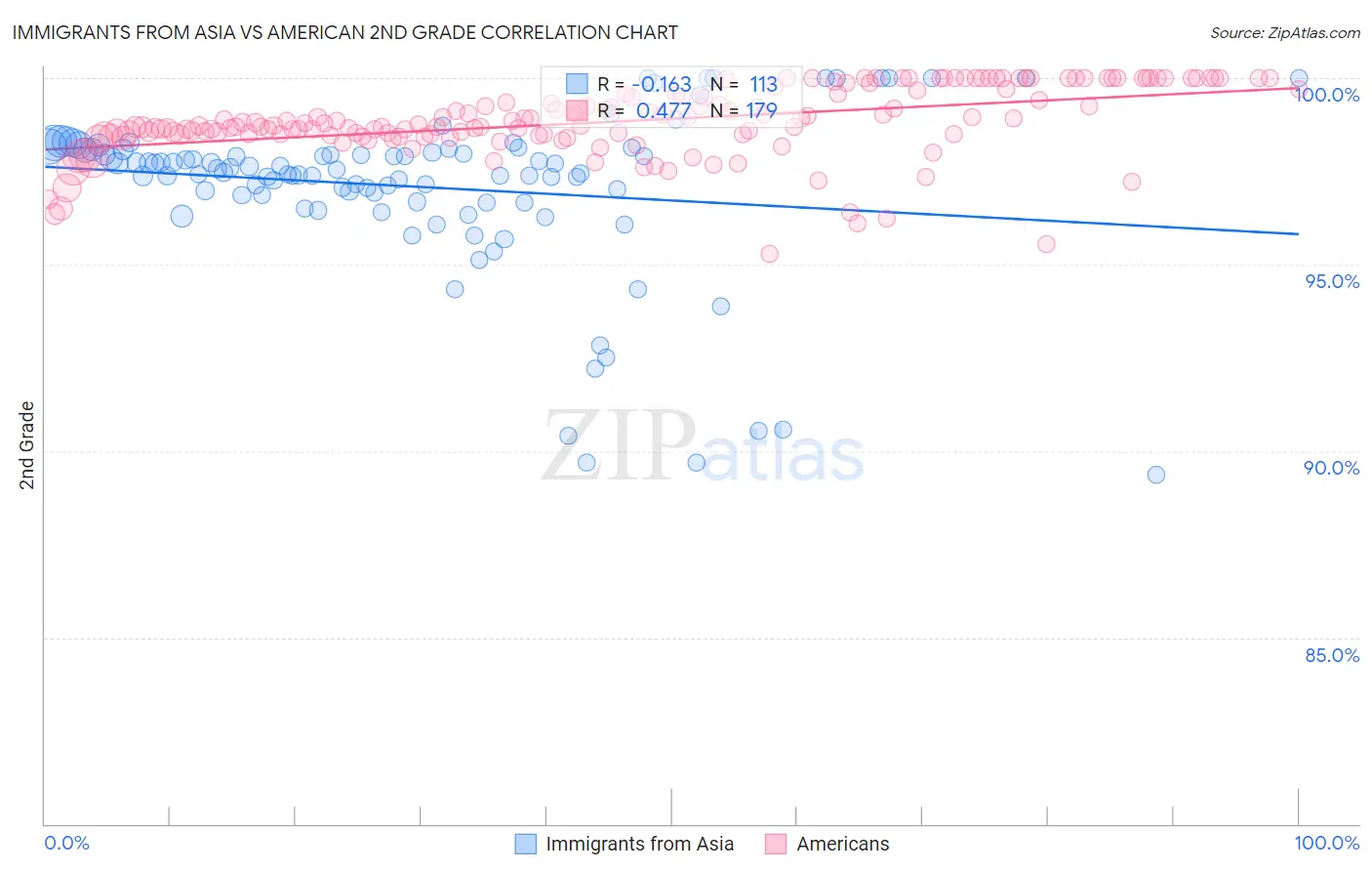 Immigrants from Asia vs American 2nd Grade Correlation Chart