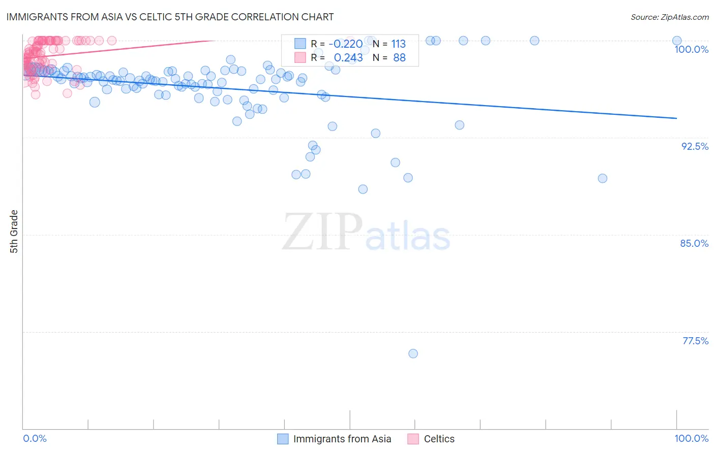 Immigrants from Asia vs Celtic 5th Grade Correlation Chart