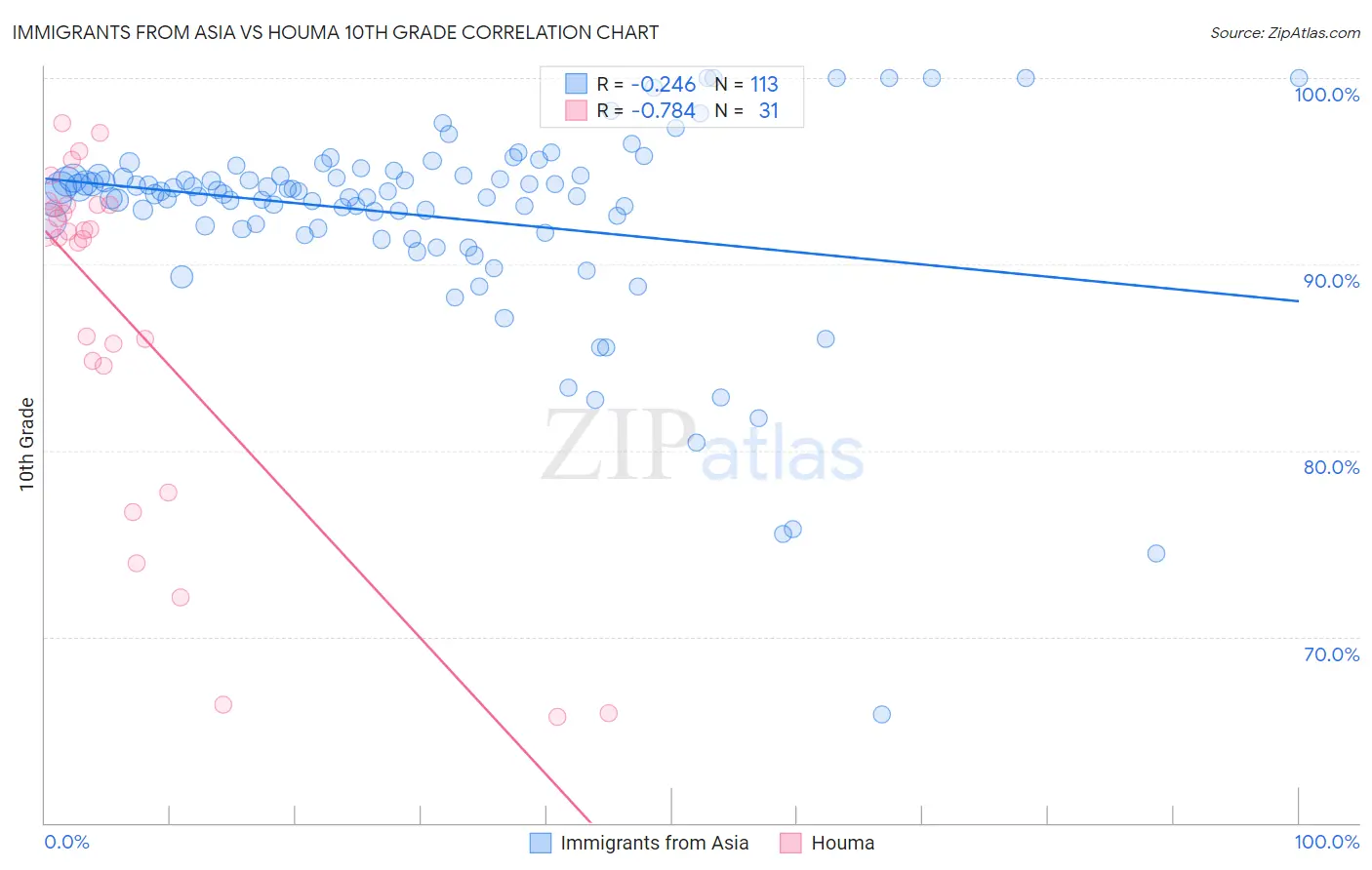 Immigrants from Asia vs Houma 10th Grade Correlation Chart