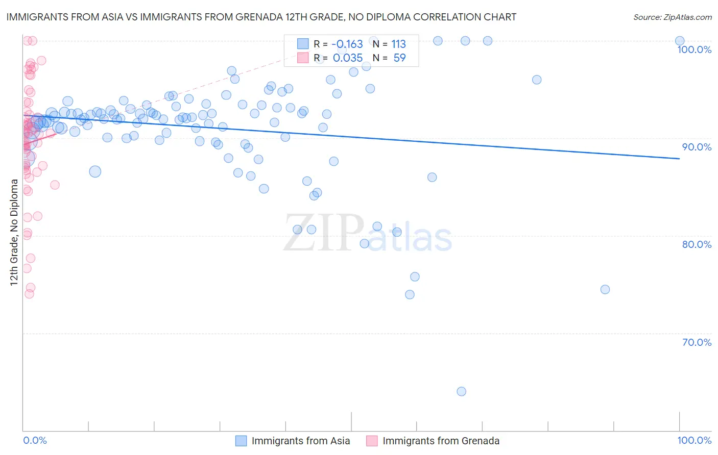 Immigrants from Asia vs Immigrants from Grenada 12th Grade, No Diploma Correlation Chart
