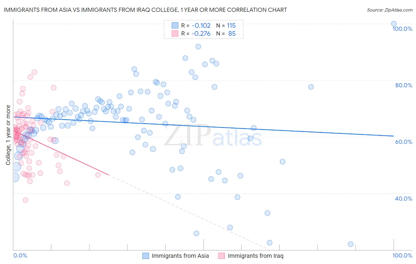 Immigrants from Asia vs Immigrants from Iraq College, 1 year or more Correlation Chart