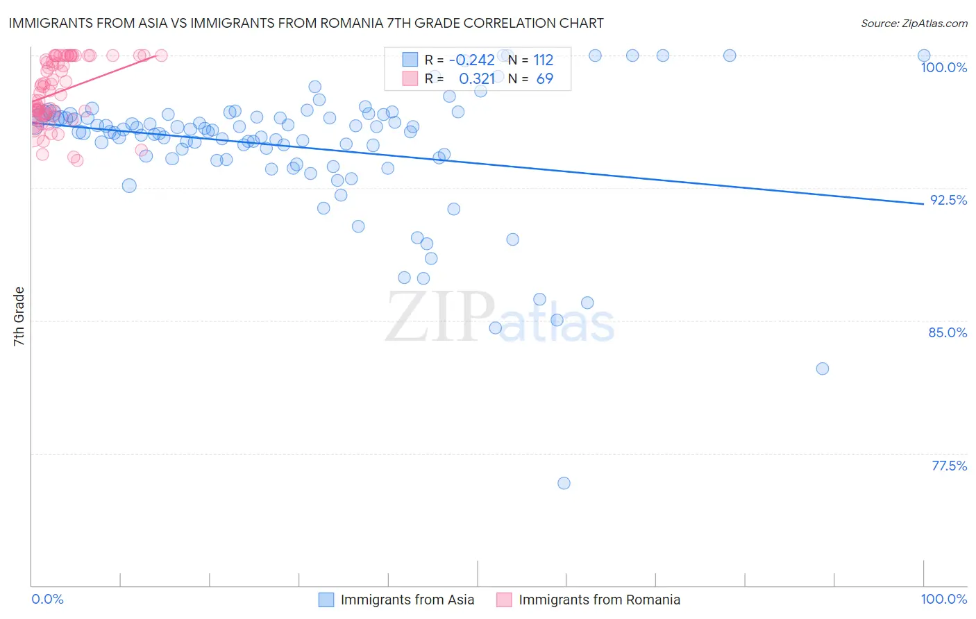 Immigrants from Asia vs Immigrants from Romania 7th Grade Correlation Chart