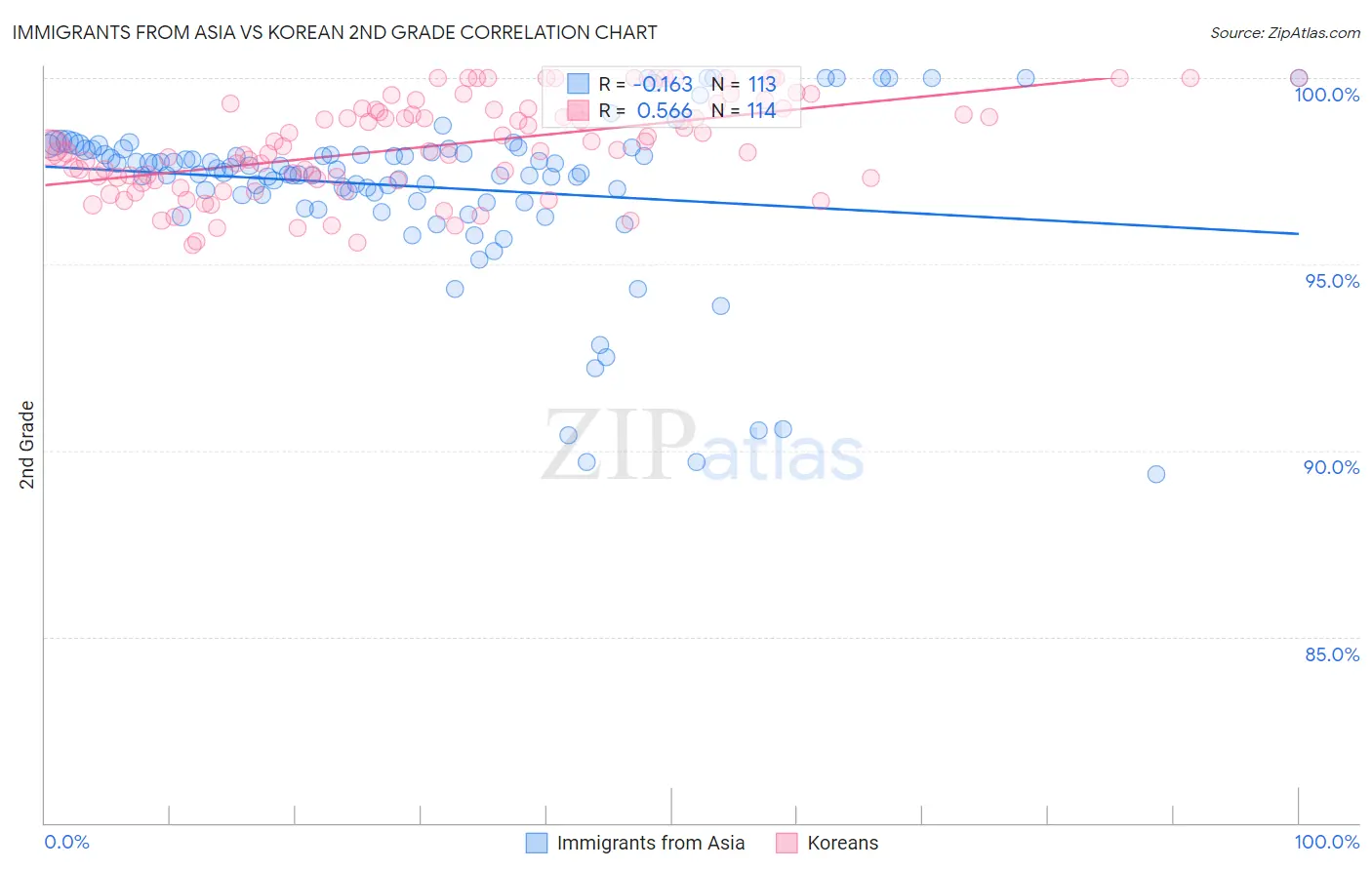 Immigrants from Asia vs Korean 2nd Grade Correlation Chart
