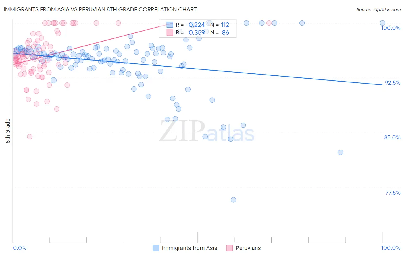Immigrants from Asia vs Peruvian 8th Grade Correlation Chart