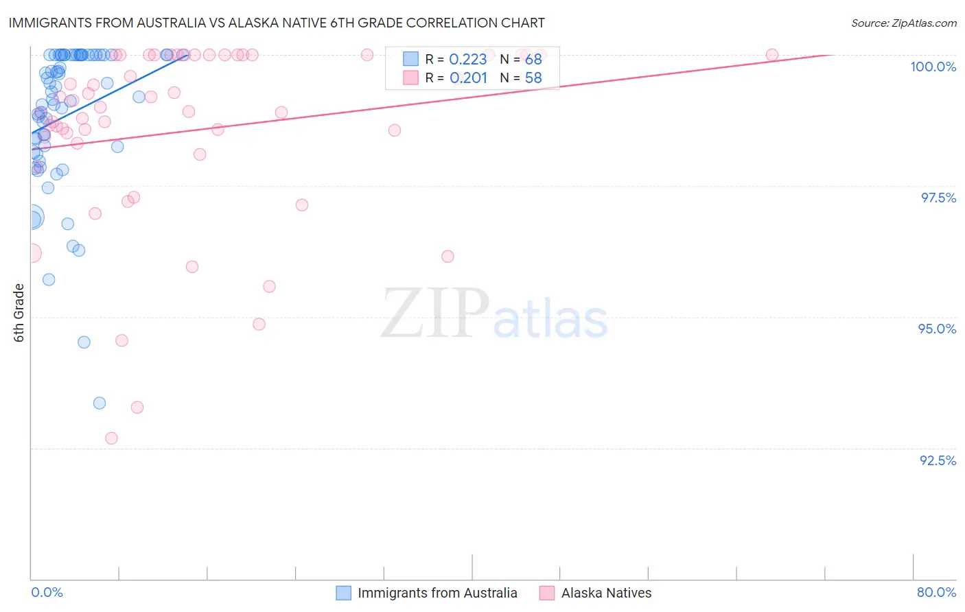 Immigrants from Australia vs Alaska Native 6th Grade Correlation Chart