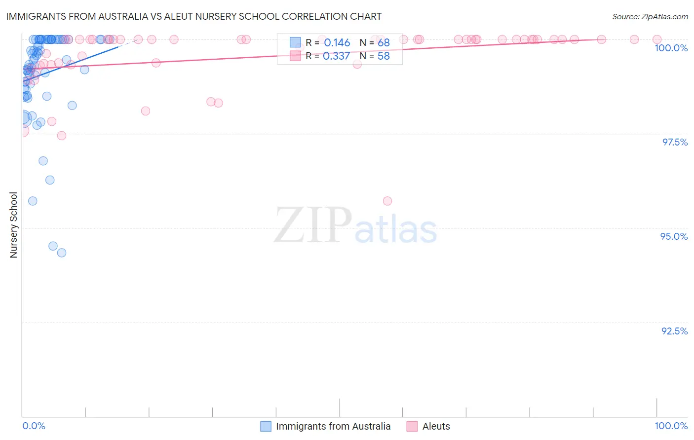 Immigrants from Australia vs Aleut Nursery School Correlation Chart