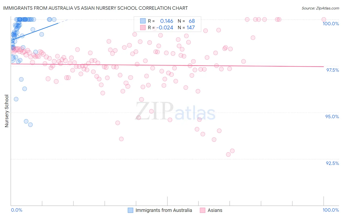 Immigrants from Australia vs Asian Nursery School Correlation Chart