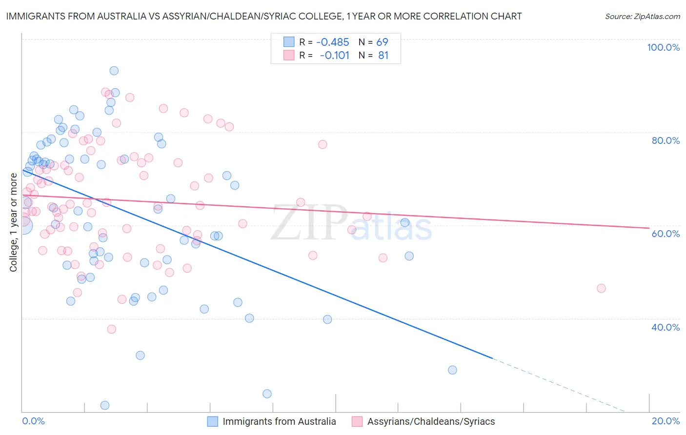 Immigrants from Australia vs Assyrian/Chaldean/Syriac College, 1 year or more