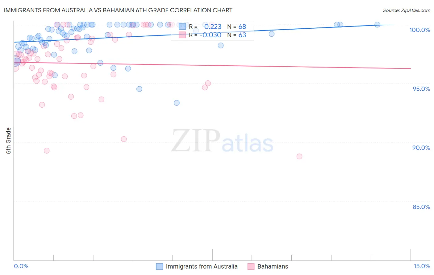 Immigrants from Australia vs Bahamian 6th Grade Correlation Chart
