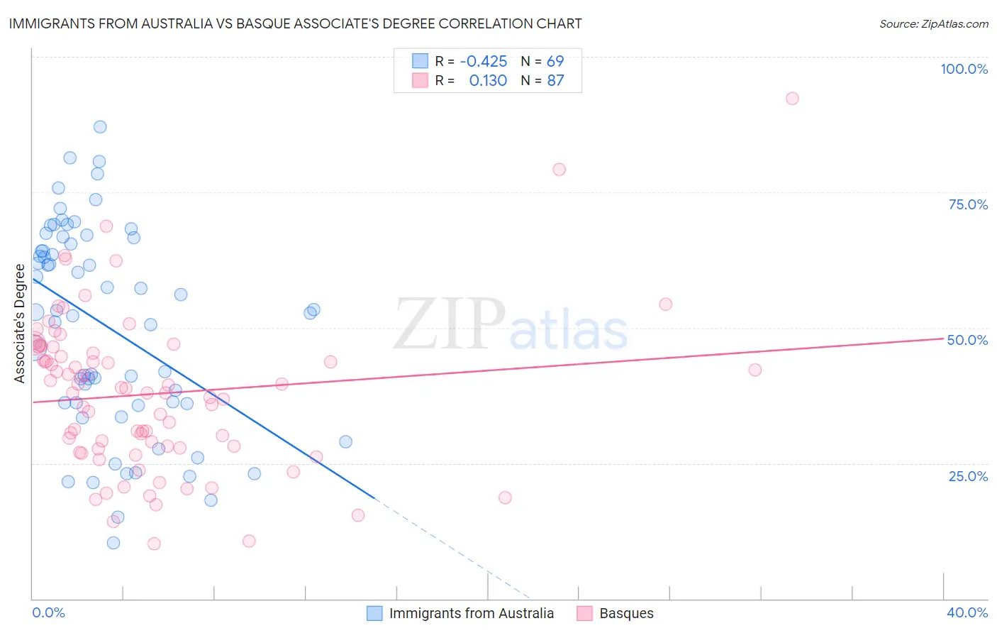 Immigrants from Australia vs Basque Associate's Degree Correlation Chart