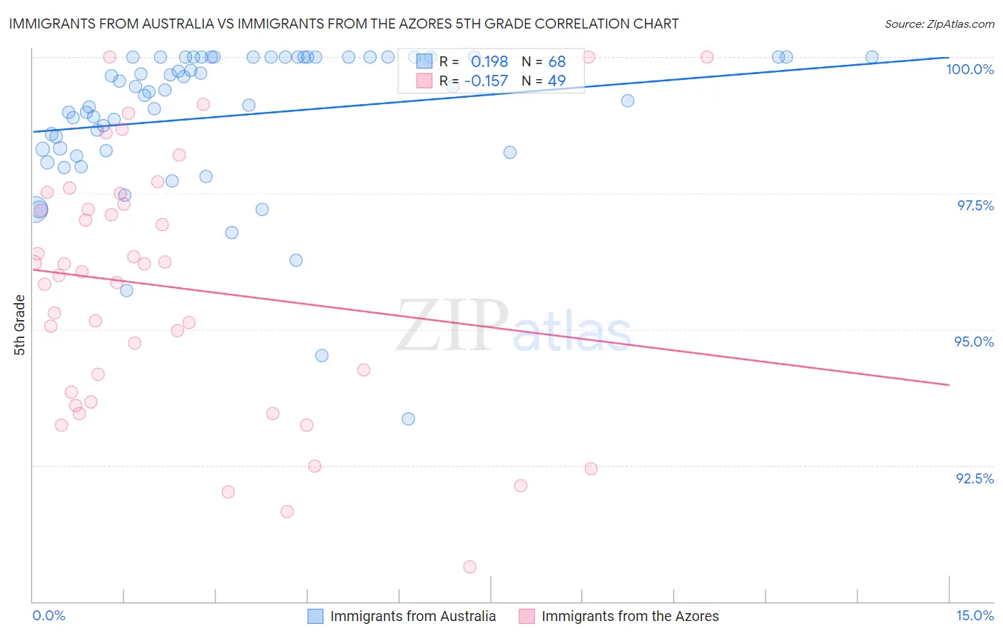Immigrants from Australia vs Immigrants from the Azores 5th Grade Correlation Chart