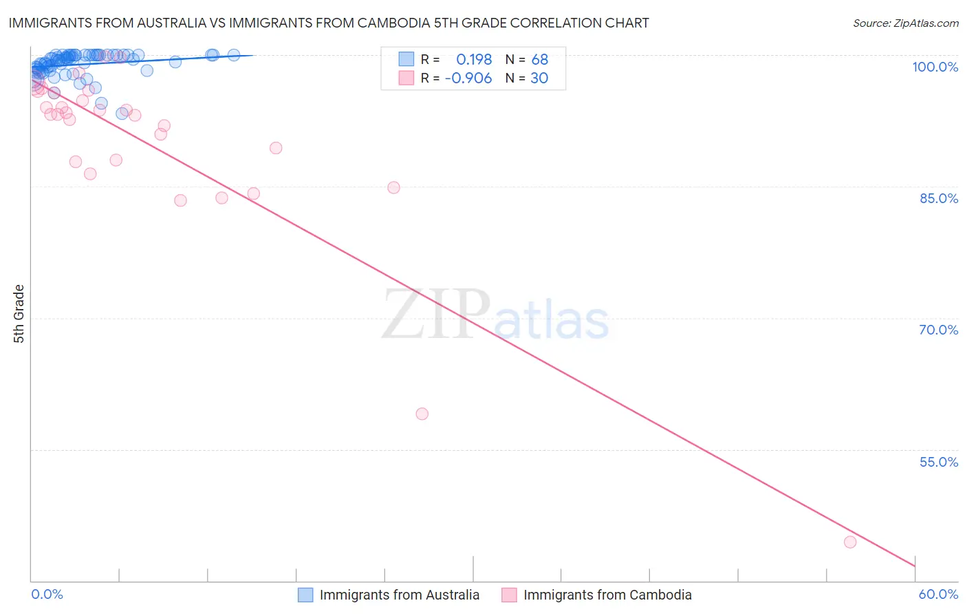 Immigrants from Australia vs Immigrants from Cambodia 5th Grade Correlation Chart