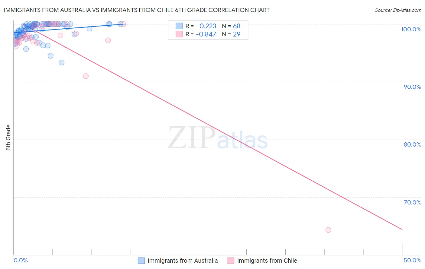 Immigrants from Australia vs Immigrants from Chile 6th Grade Correlation Chart