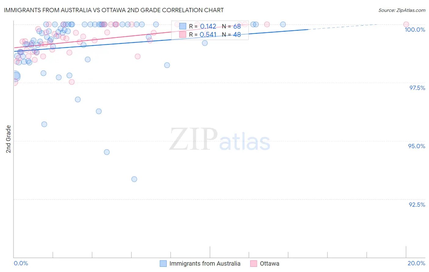 Immigrants from Australia vs Ottawa 2nd Grade Correlation Chart