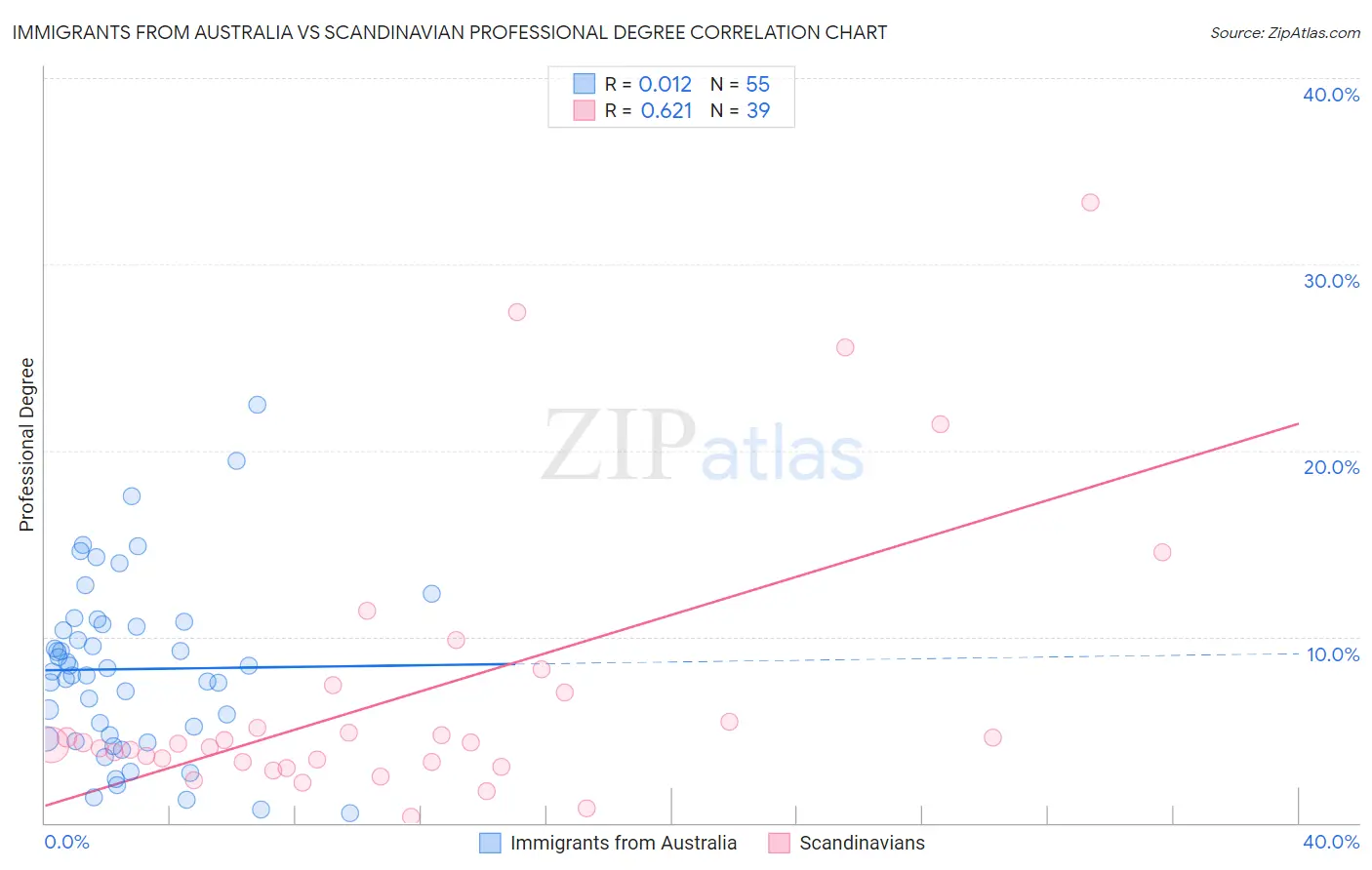 Immigrants from Australia vs Scandinavian Professional Degree Correlation Chart