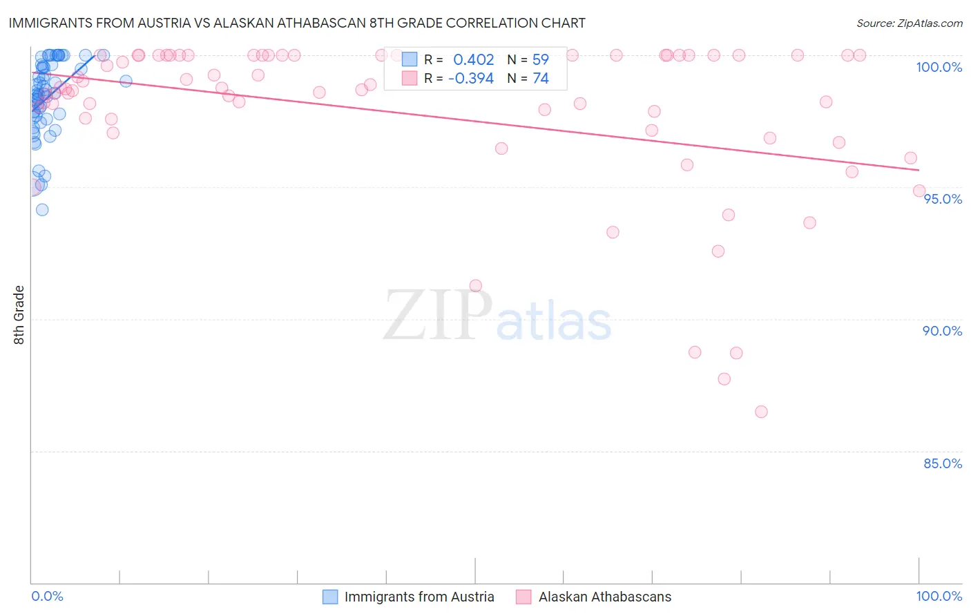 Immigrants from Austria vs Alaskan Athabascan 8th Grade Correlation Chart