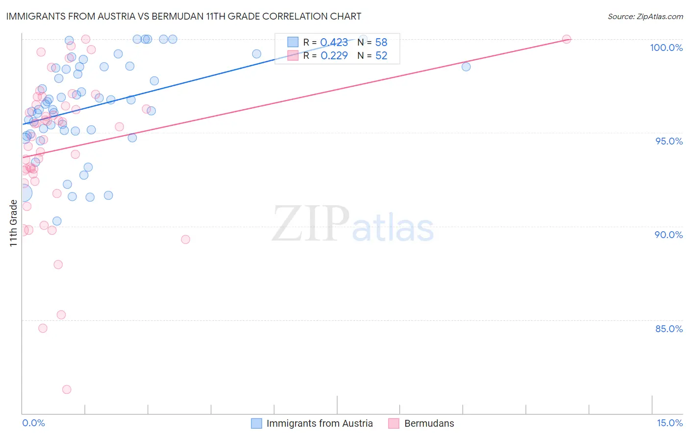 Immigrants from Austria vs Bermudan 11th Grade Correlation Chart