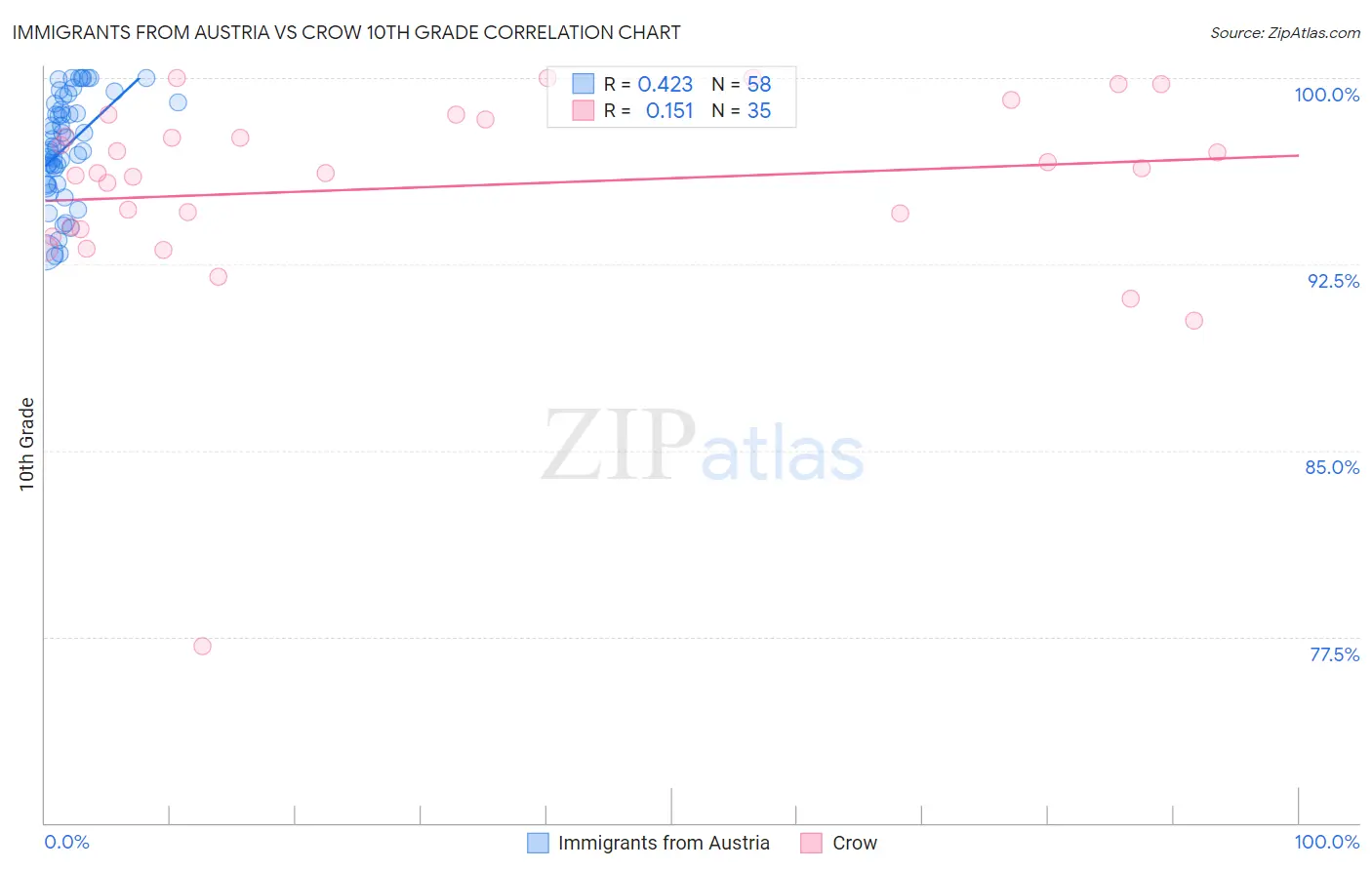 Immigrants from Austria vs Crow 10th Grade Correlation Chart