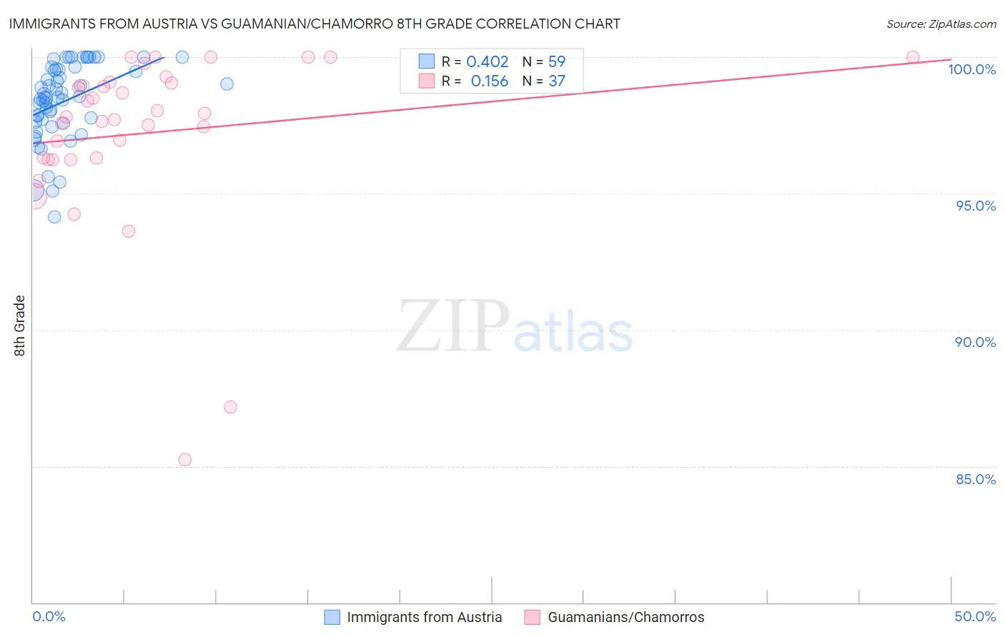 Immigrants from Austria vs Guamanian/Chamorro 8th Grade Correlation Chart