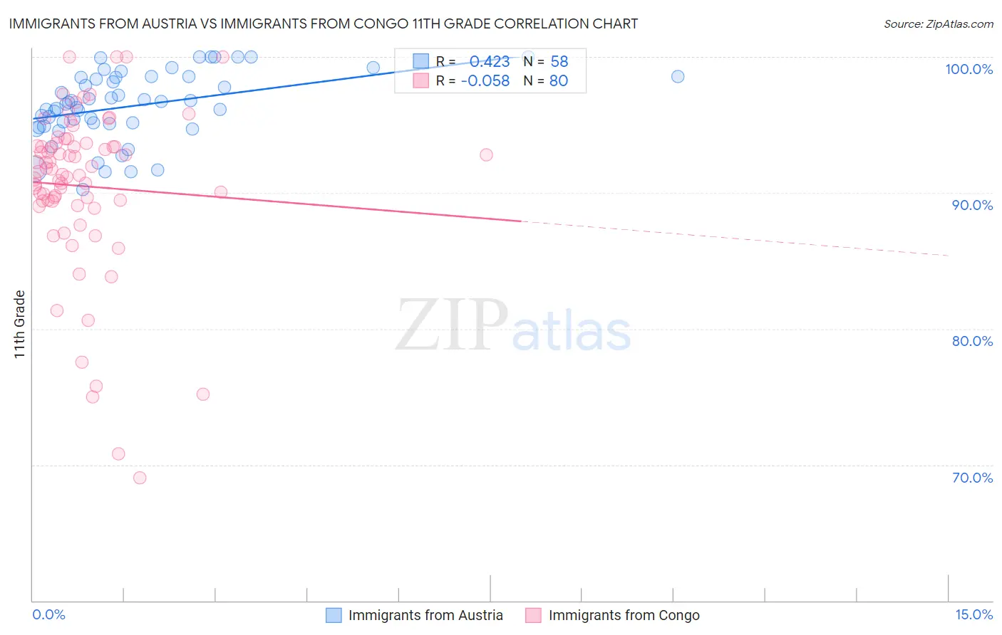 Immigrants from Austria vs Immigrants from Congo 11th Grade Correlation Chart
