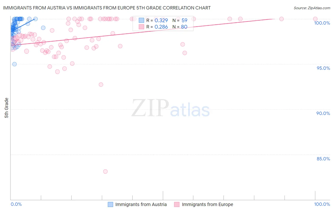 Immigrants from Austria vs Immigrants from Europe 5th Grade Correlation Chart
