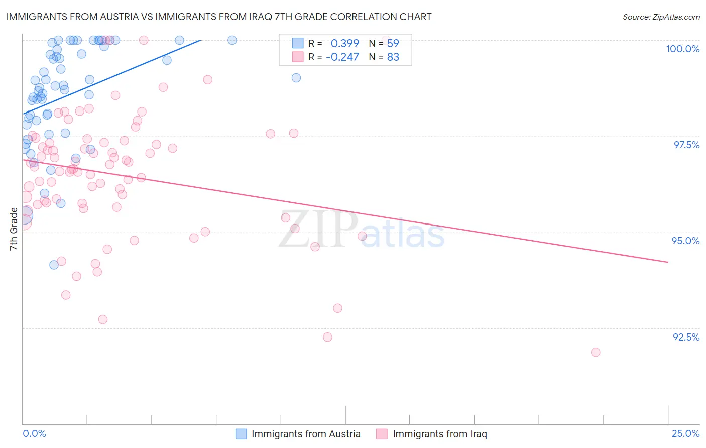 Immigrants from Austria vs Immigrants from Iraq 7th Grade Correlation Chart