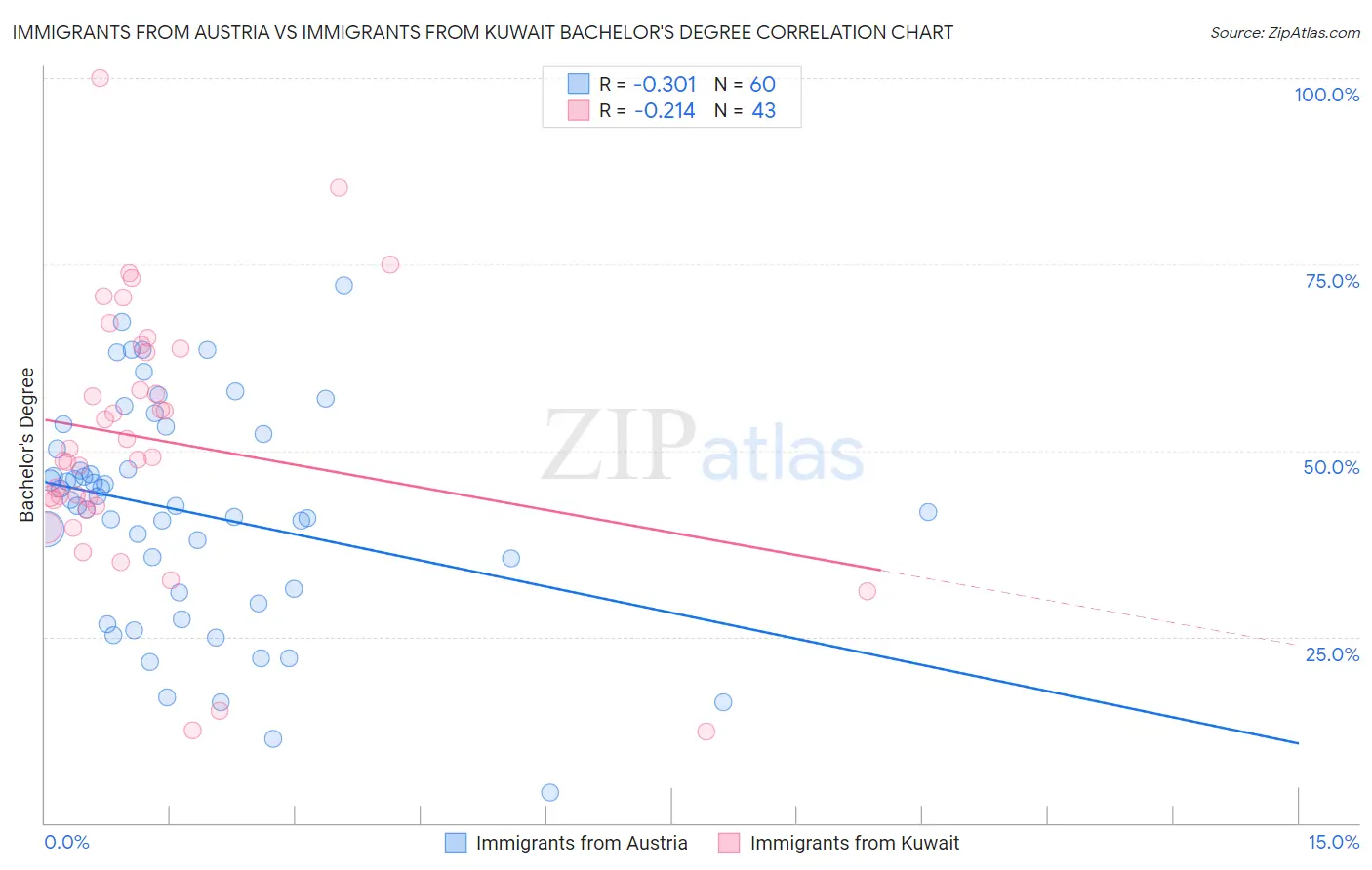 Immigrants from Austria vs Immigrants from Kuwait Bachelor's Degree Correlation Chart
