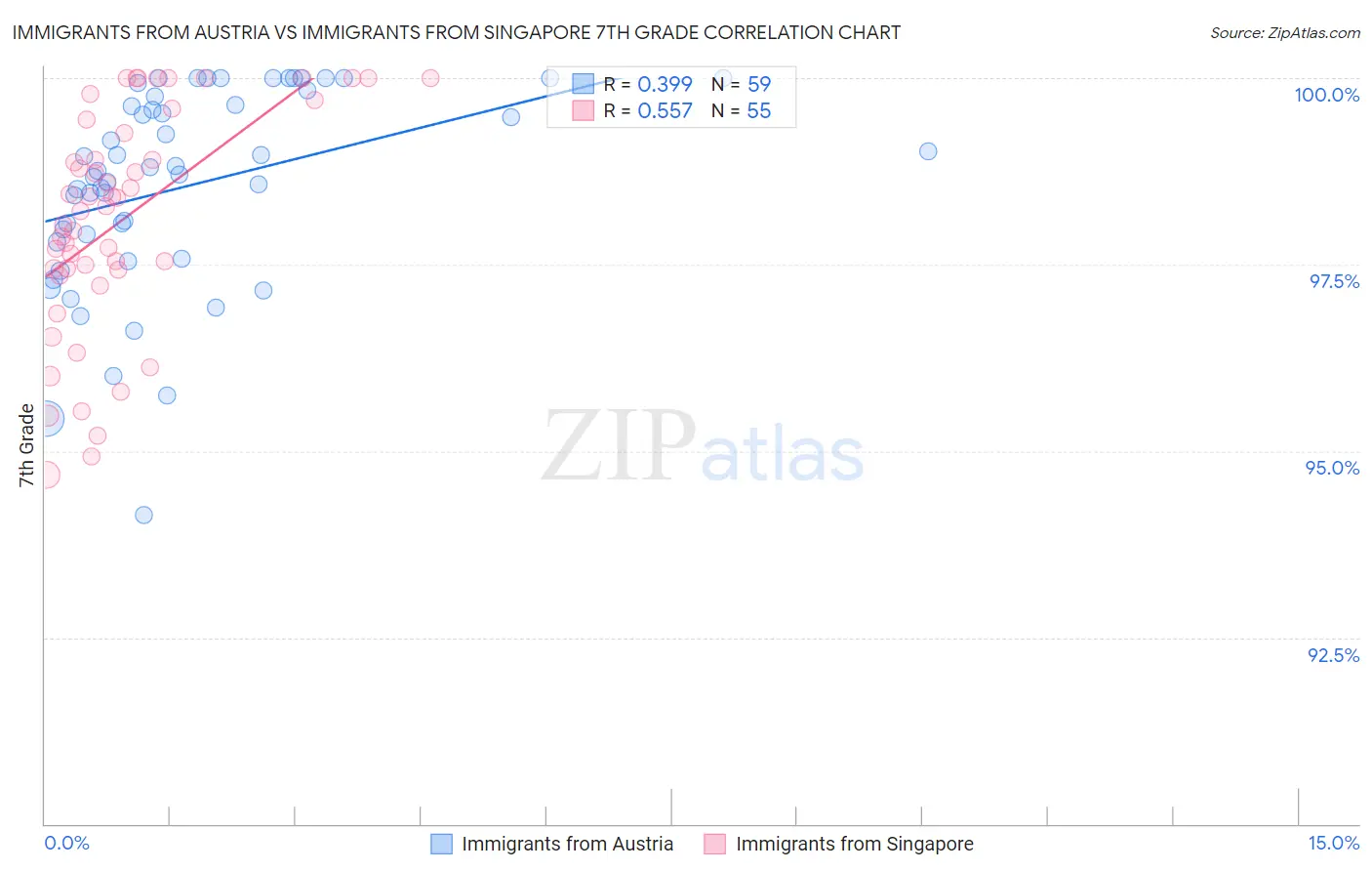 Immigrants from Austria vs Immigrants from Singapore 7th Grade Correlation Chart