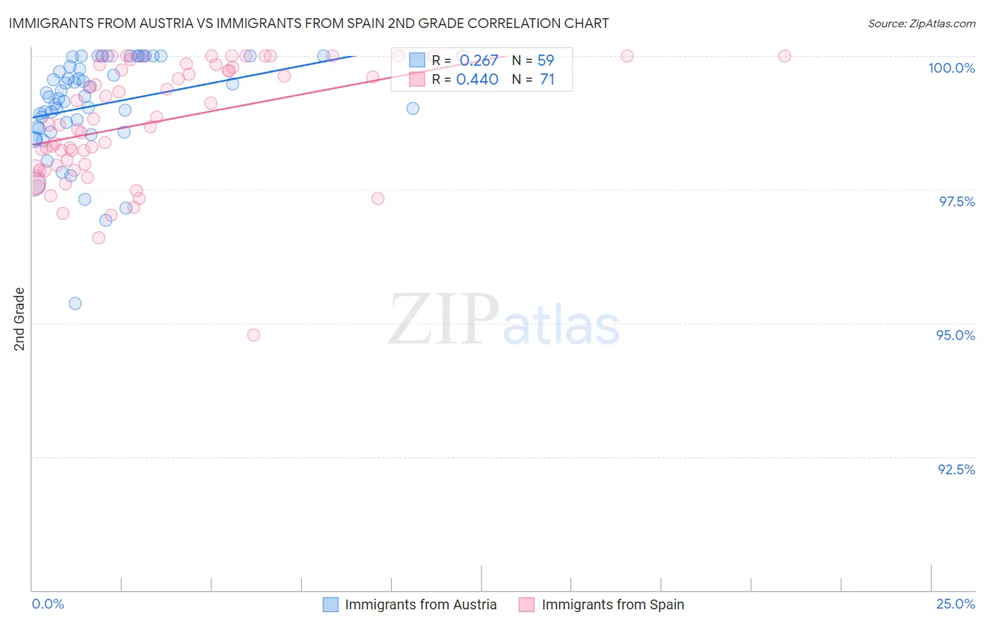 Immigrants from Austria vs Immigrants from Spain 2nd Grade Correlation Chart