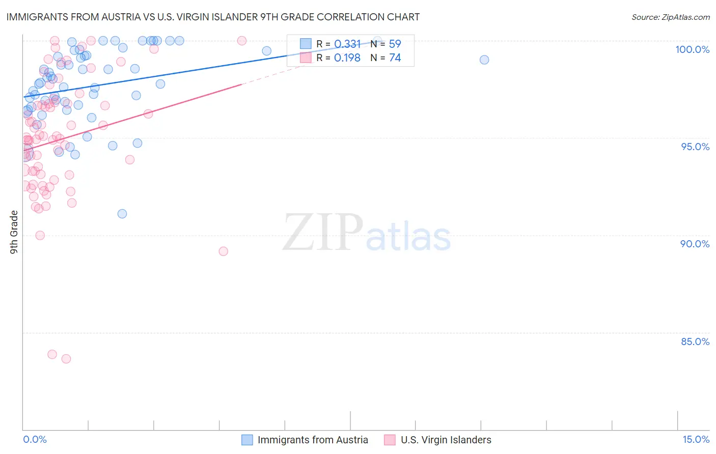 Immigrants from Austria vs U.S. Virgin Islander 9th Grade Correlation Chart