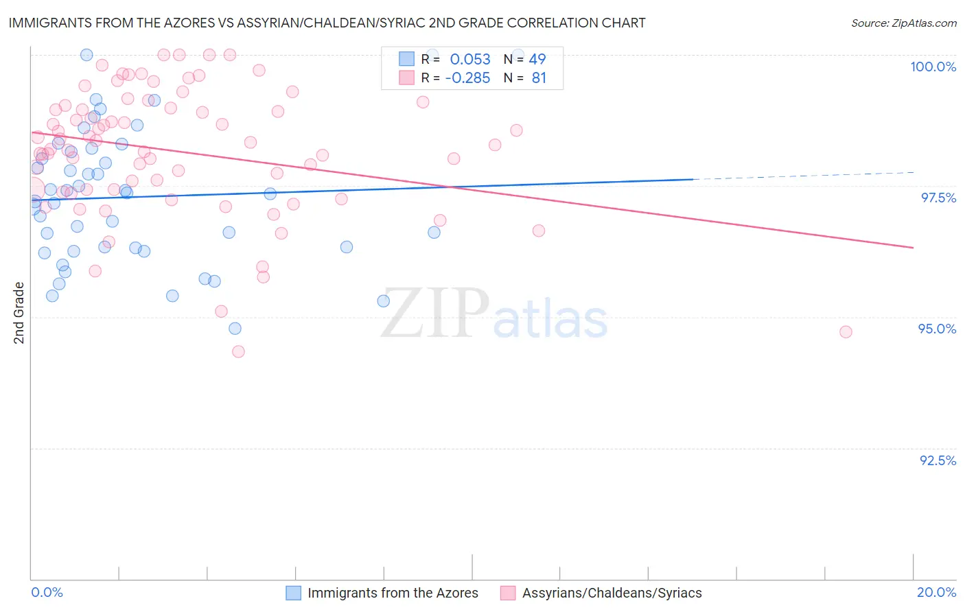 Immigrants from the Azores vs Assyrian/Chaldean/Syriac 2nd Grade Correlation Chart