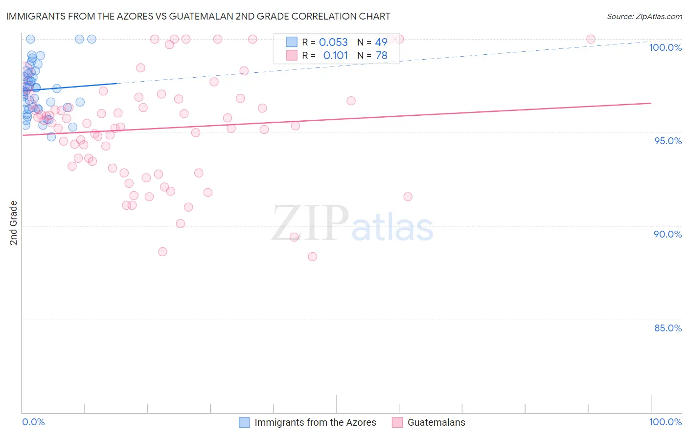 Immigrants from the Azores vs Guatemalan 2nd Grade Correlation Chart
