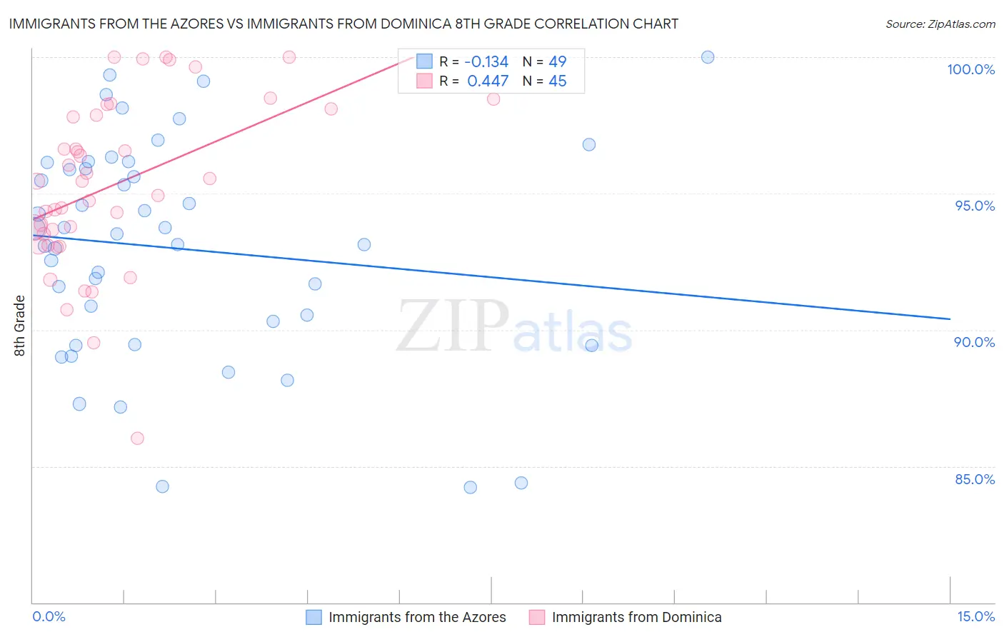 Immigrants from the Azores vs Immigrants from Dominica 8th Grade Correlation Chart