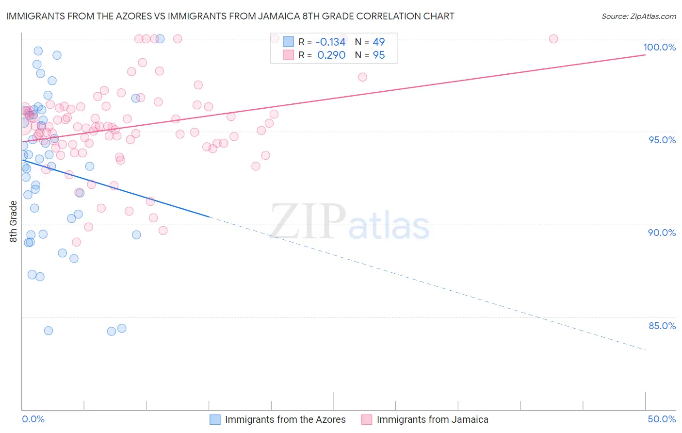 Immigrants from the Azores vs Immigrants from Jamaica 8th Grade