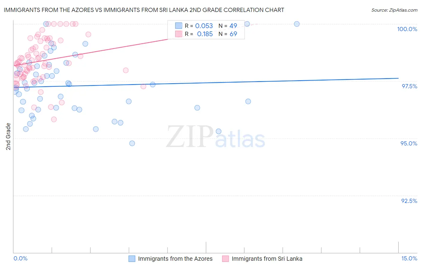 Immigrants from the Azores vs Immigrants from Sri Lanka 2nd Grade Correlation Chart