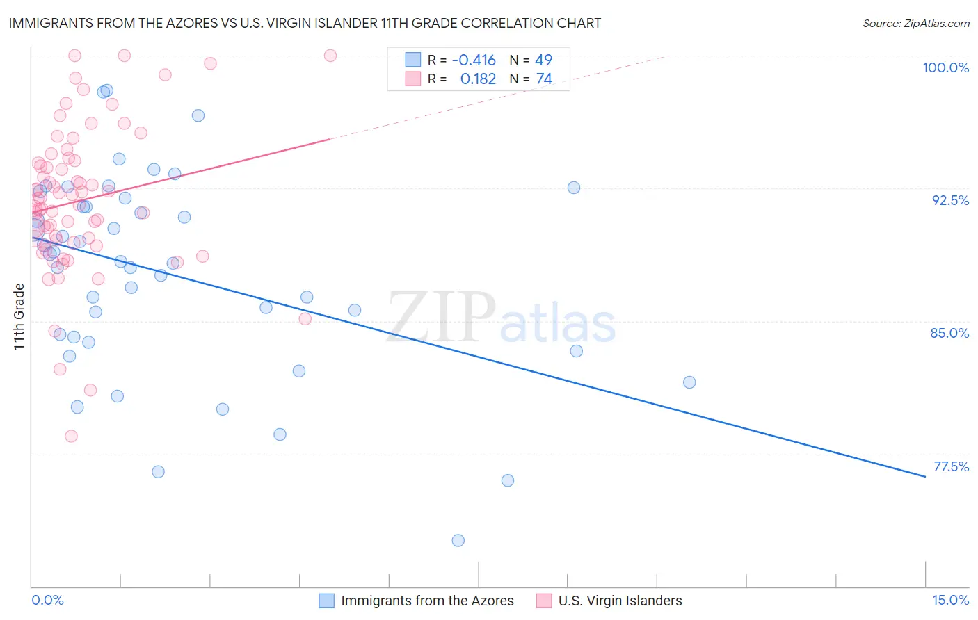 Immigrants from the Azores vs U.S. Virgin Islander 11th Grade Correlation Chart