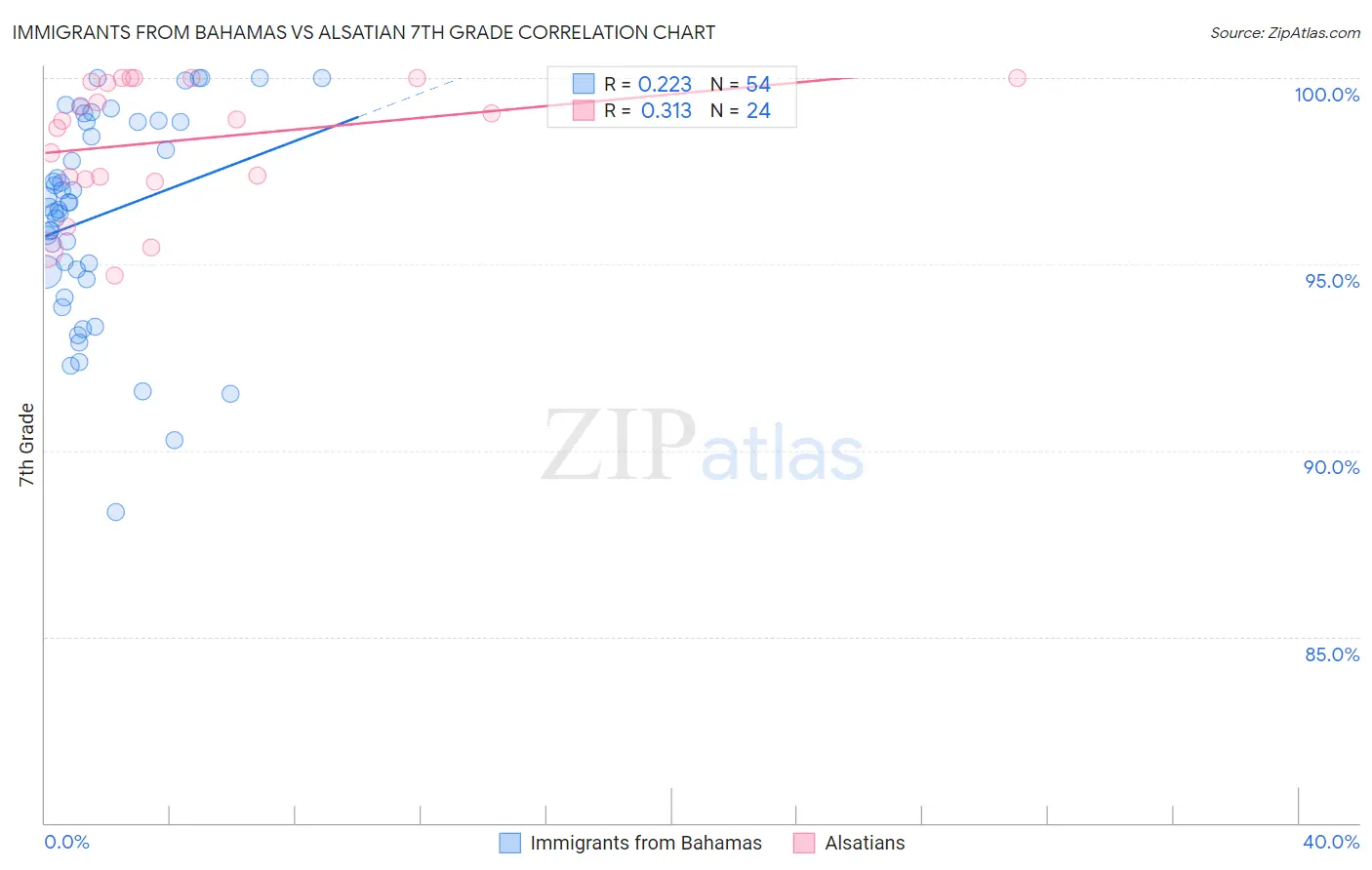 Immigrants from Bahamas vs Alsatian 7th Grade Correlation Chart