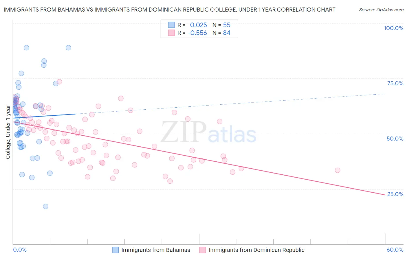 Immigrants from Bahamas vs Immigrants from Dominican Republic College, Under 1 year Correlation Chart