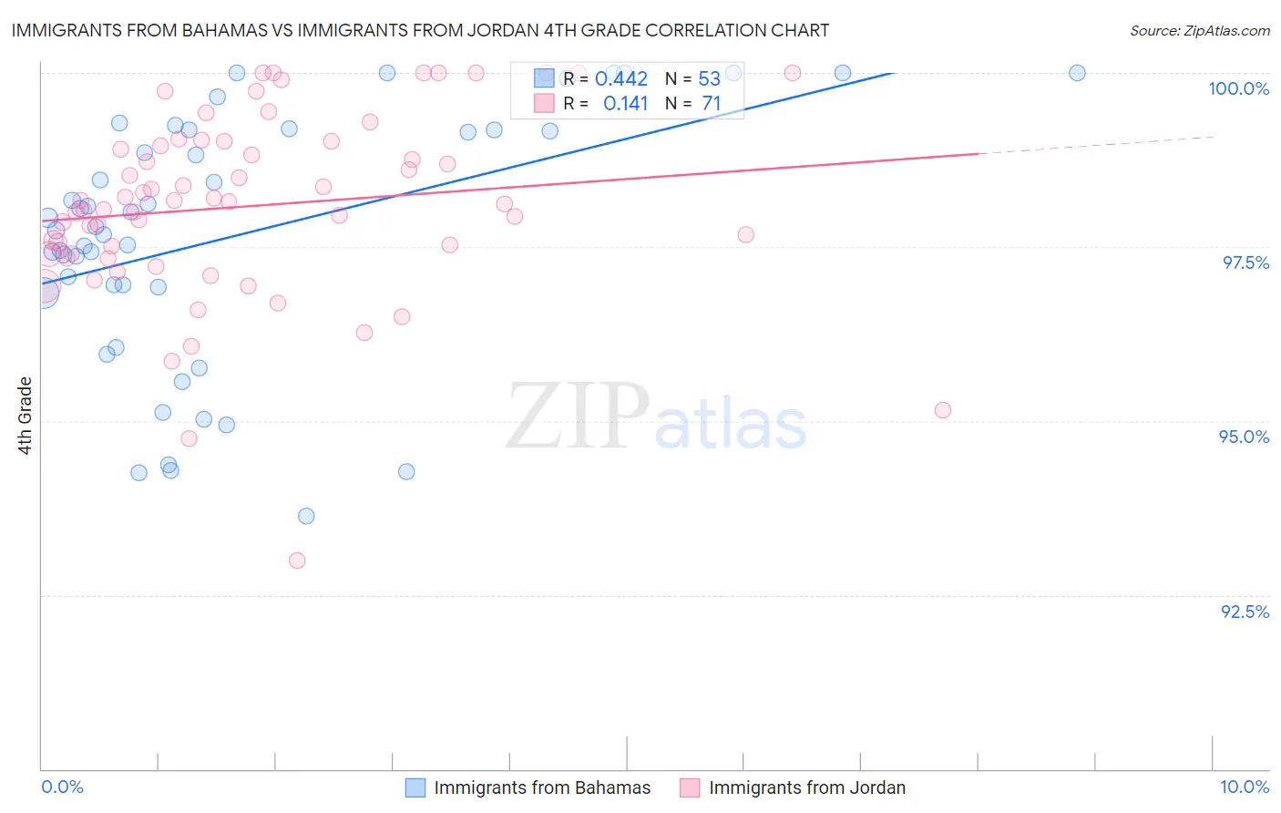 Immigrants from Bahamas vs Immigrants from Jordan 4th Grade Correlation Chart