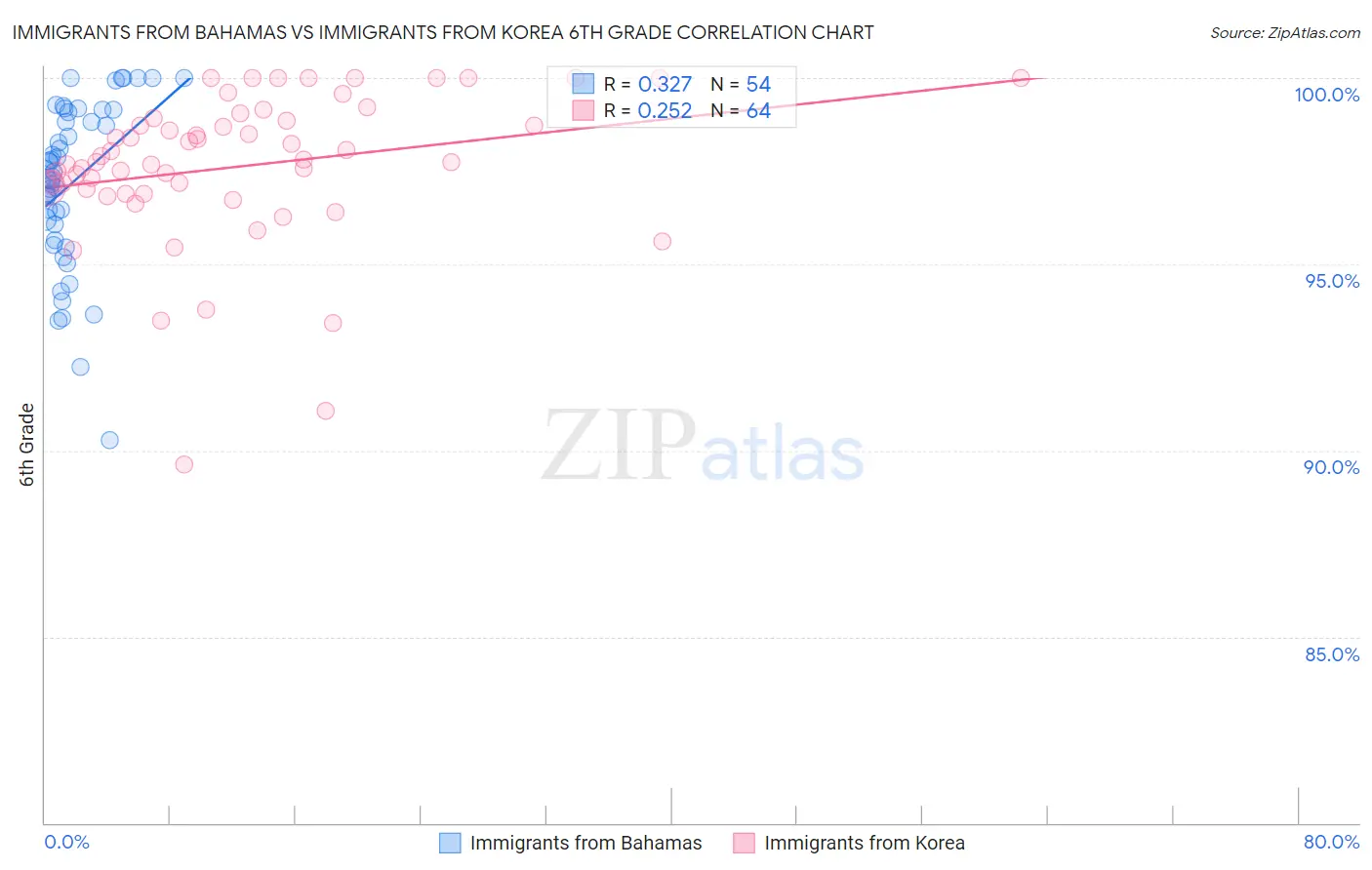 Immigrants from Bahamas vs Immigrants from Korea 6th Grade Correlation Chart