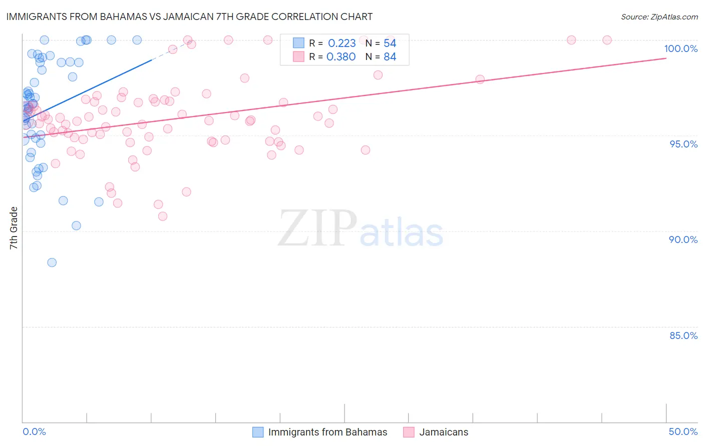 Immigrants from Bahamas vs Jamaican 7th Grade Correlation Chart