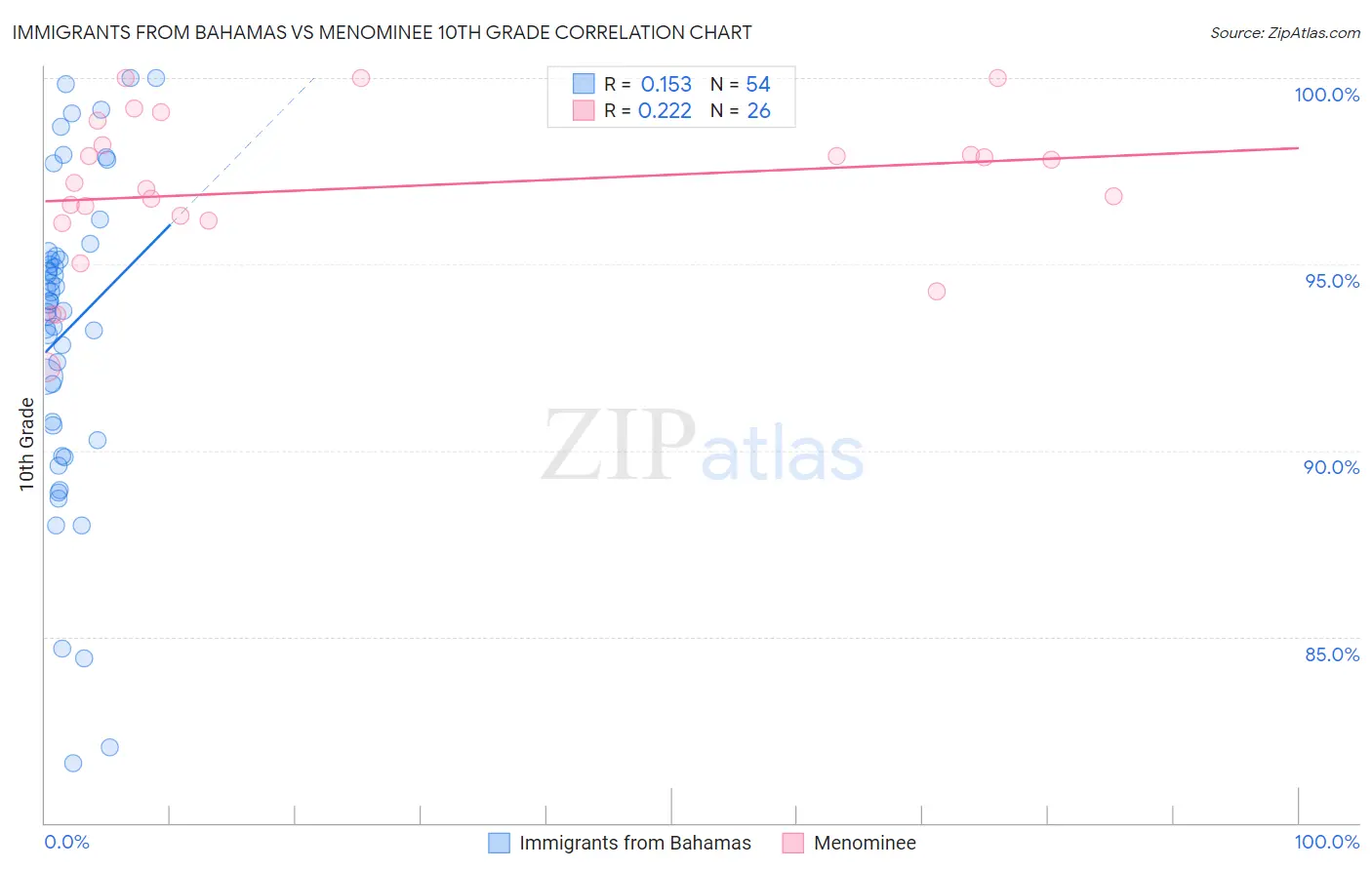 Immigrants from Bahamas vs Menominee 10th Grade Correlation Chart
