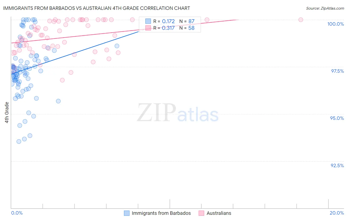 Immigrants from Barbados vs Australian 4th Grade Correlation Chart