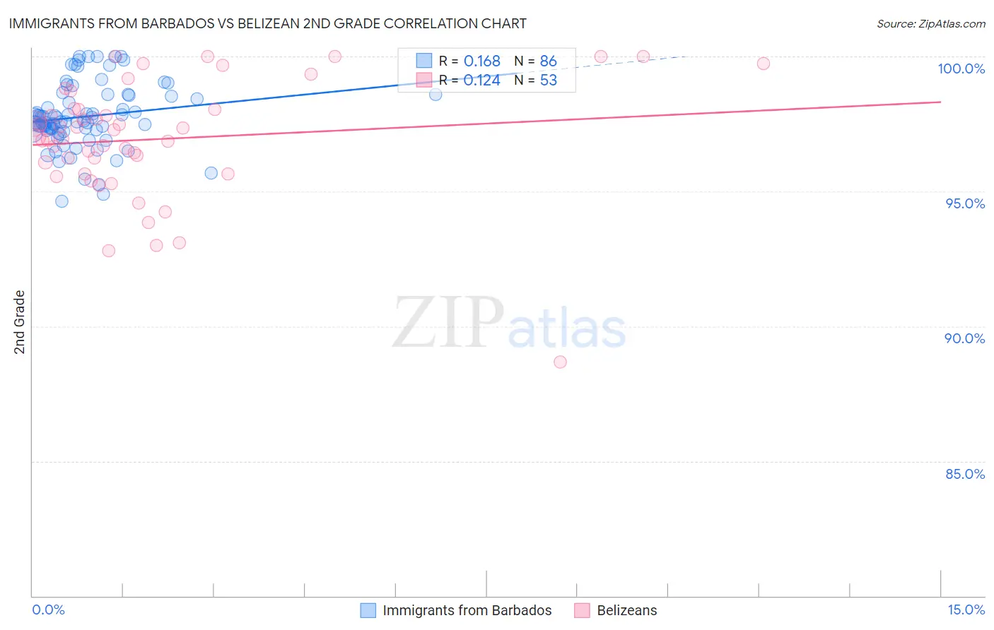 Immigrants from Barbados vs Belizean 2nd Grade Correlation Chart