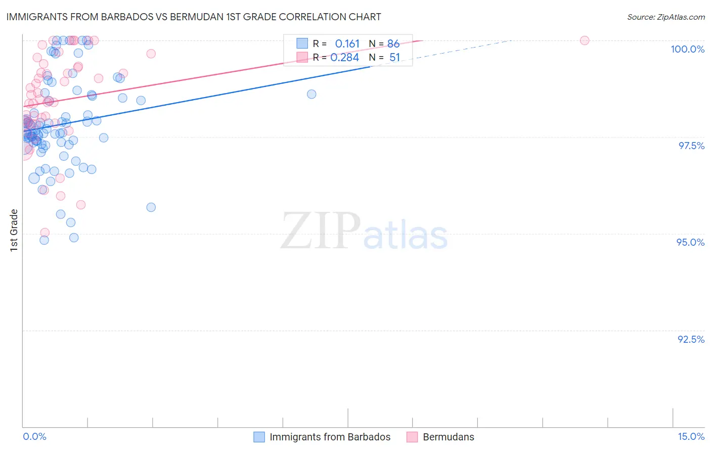 Immigrants from Barbados vs Bermudan 1st Grade Correlation Chart