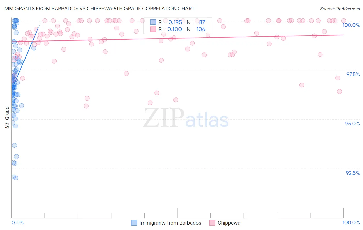 Immigrants from Barbados vs Chippewa 6th Grade Correlation Chart