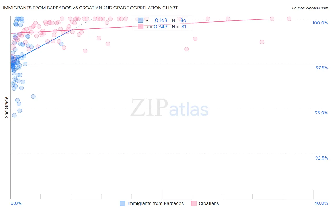 Immigrants from Barbados vs Croatian 2nd Grade Correlation Chart