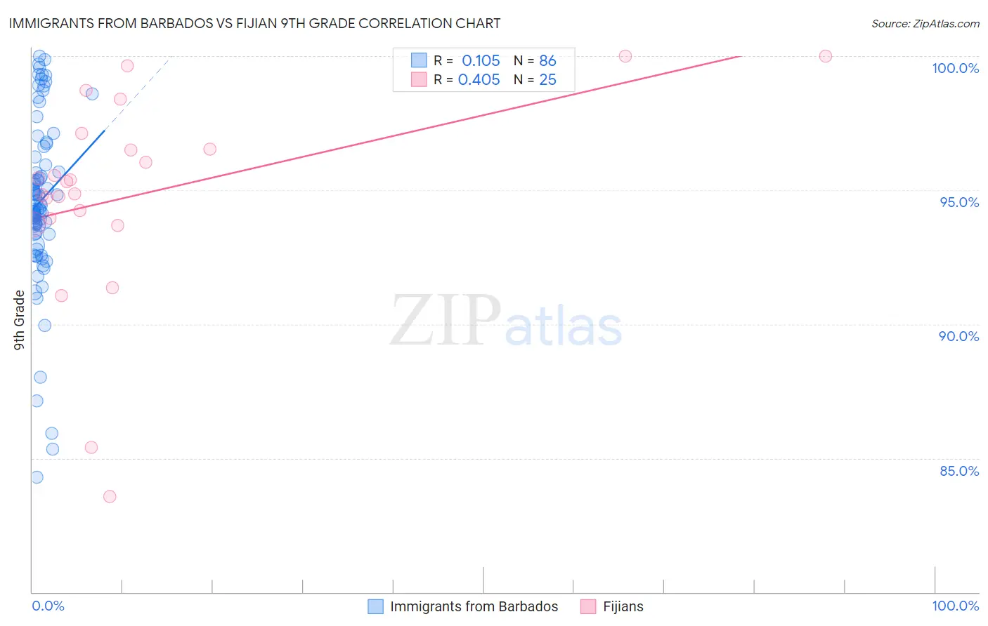 Immigrants from Barbados vs Fijian 9th Grade Correlation Chart