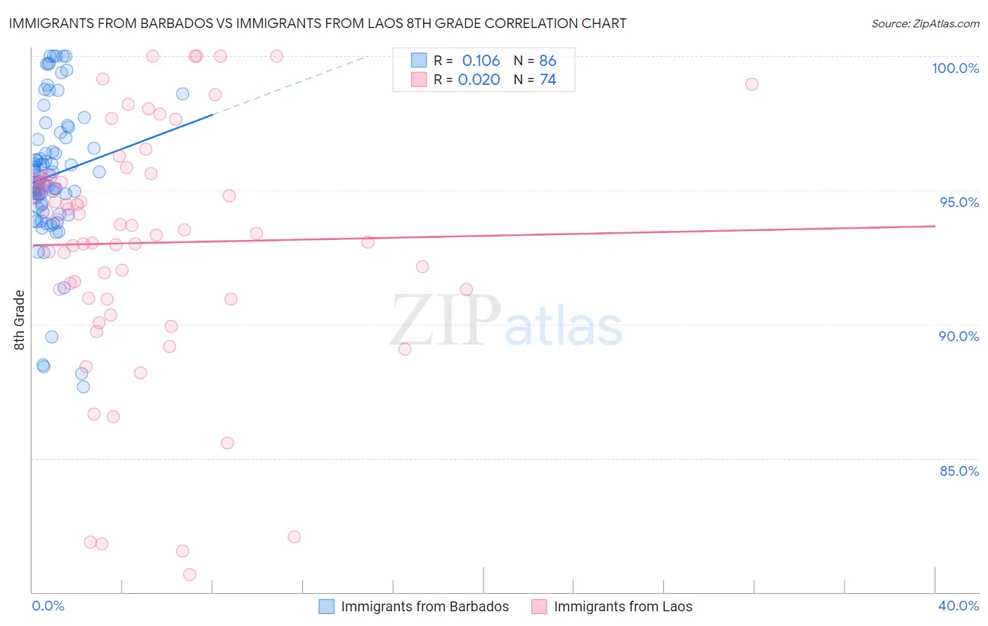 Immigrants from Barbados vs Immigrants from Laos 8th Grade Correlation Chart