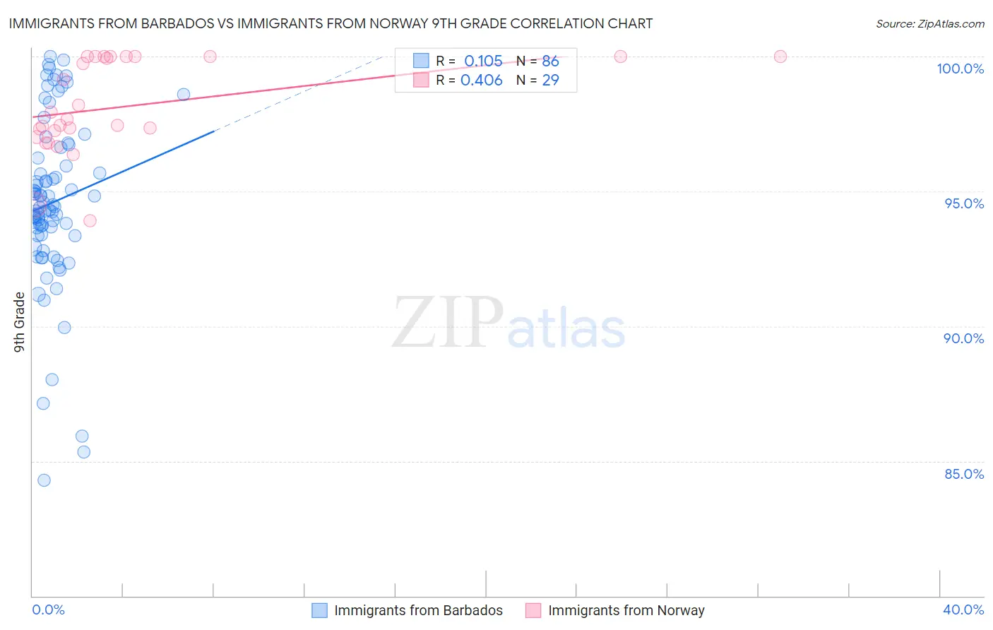 Immigrants from Barbados vs Immigrants from Norway 9th Grade Correlation Chart